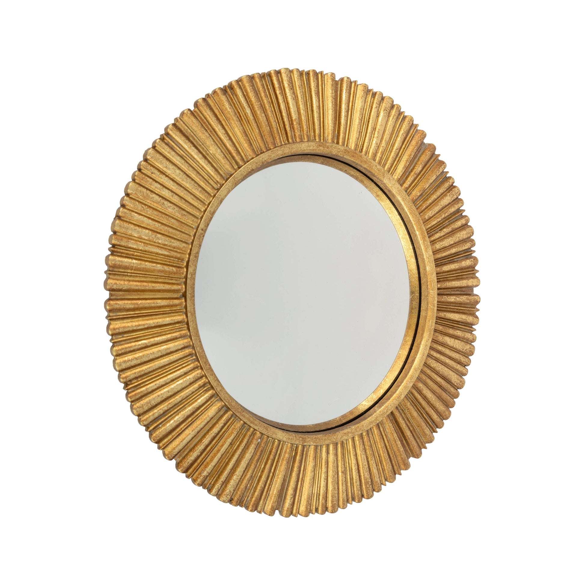 Round convex mirror in antique gold resin sun burst frame,8.5 in. Please note that due to the nature of the materials,slight color variations may occur between individual items and compared to images. These differences are minimal and do not affect the overall appearance. The approximate dimensions are: 8.7x0.8x8.7in.