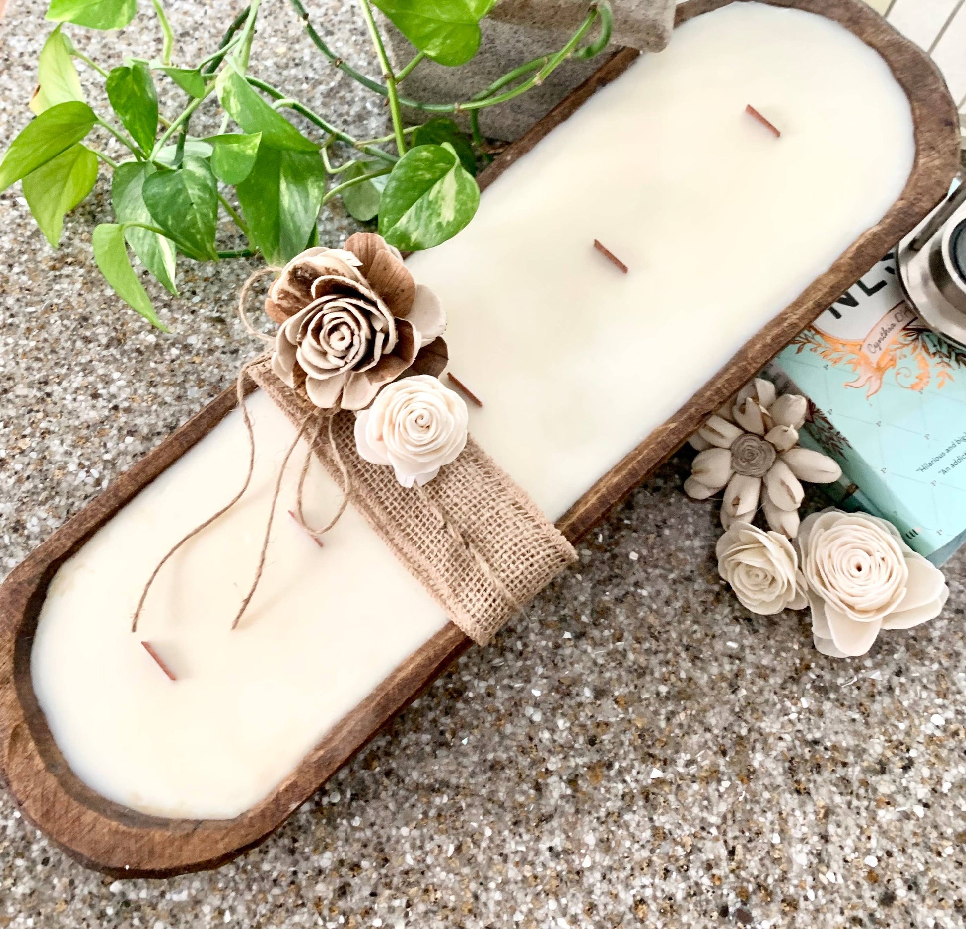 25+ oz. | Soy Blend | Scented Candle | Large wood dough bowl | 5 wood wicks