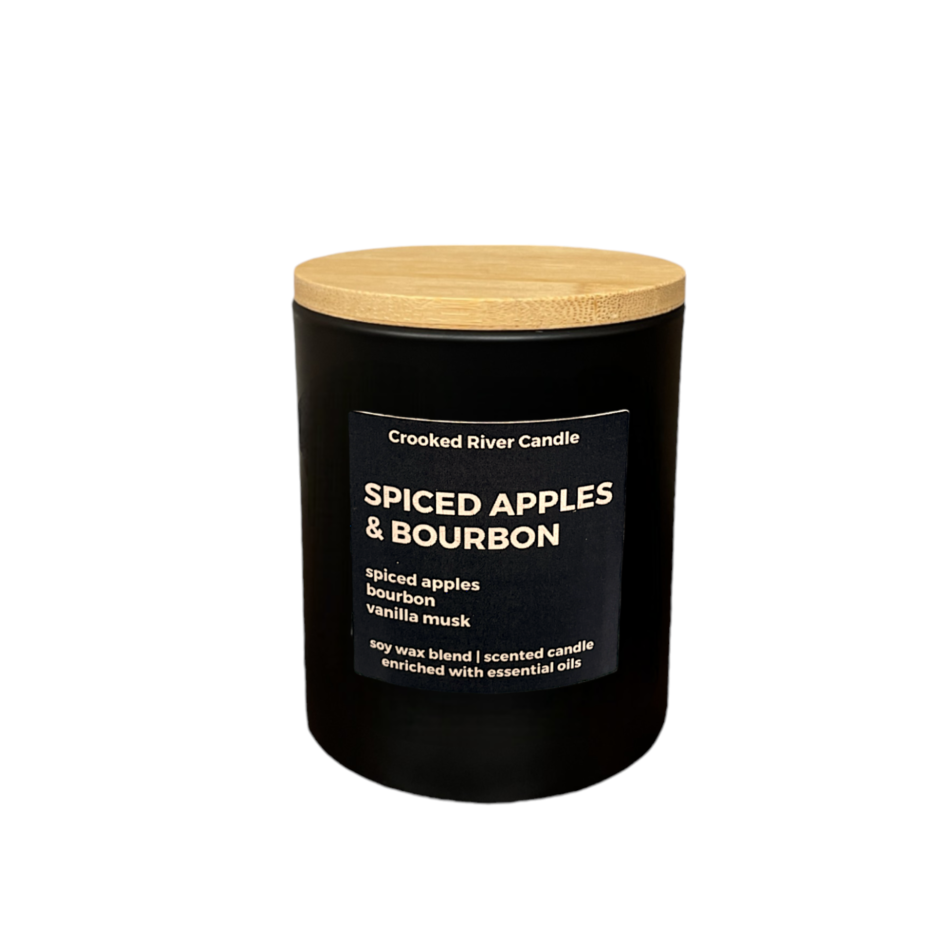 Spiced Apples & Bourbon Candle- Matte Black Jar- Bamboo Lid